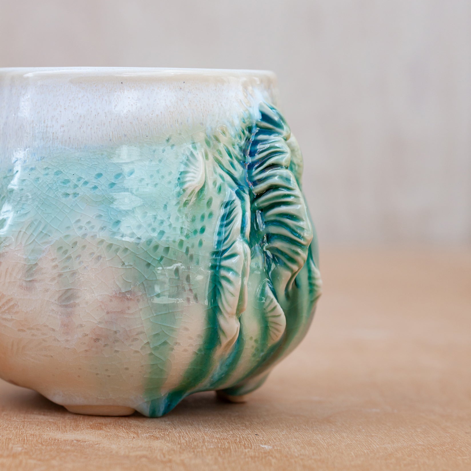 I am an artist primarily working in ceramics and watercolor. My practice involves immersion in natural ecosystems, poetic writings, and intuitive drawing to develop ideas. This process often creates abstract, sculpted, ceramic wall relief murals and layered, ephemeral paintings exploring natural systems, animism, and poetic emotional landscapes. My work pulls forms from geological processes, native ecosystems, textures and patterns found in the world and cosmos. The forms feel familiar, as abstract landscapes that we move through—attempting to communicate the transitory complexity of human and natural connections.