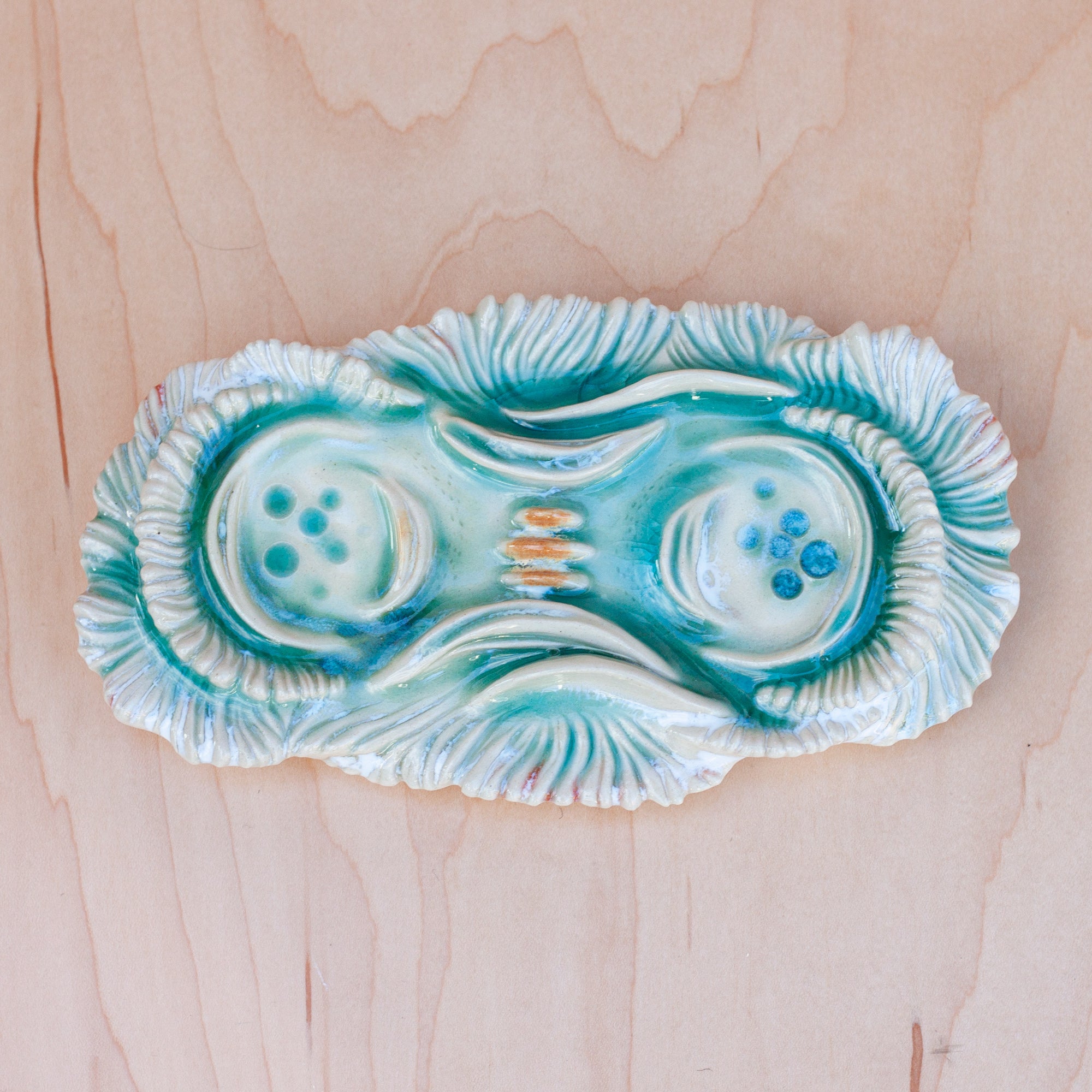 "independently overlapping, tenderly I test your permeability", stoneware and glaze, 2020.